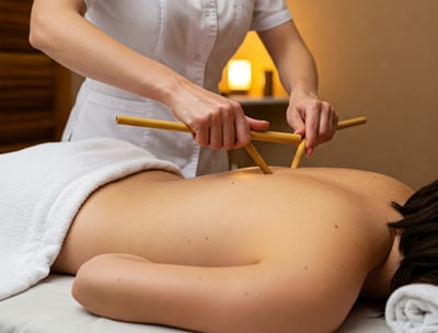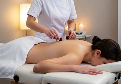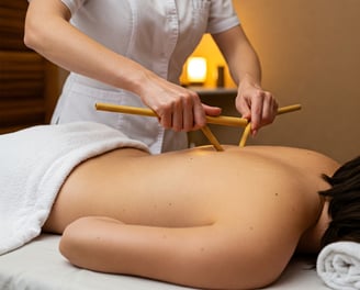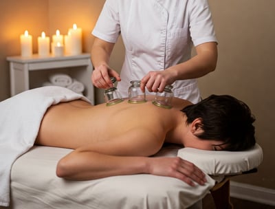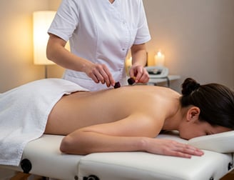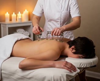 Tratamento com ventosas para alívio de tensões e dores musculares.